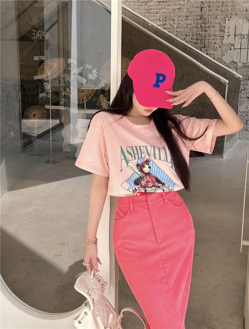 Tシャツ サマースタイルルーズトップス ピンク 大人ガーリー スウィート キュート カジュアル 夏物 10/5 秋冬 オータム ウインター ナチュラル mi4630853890872