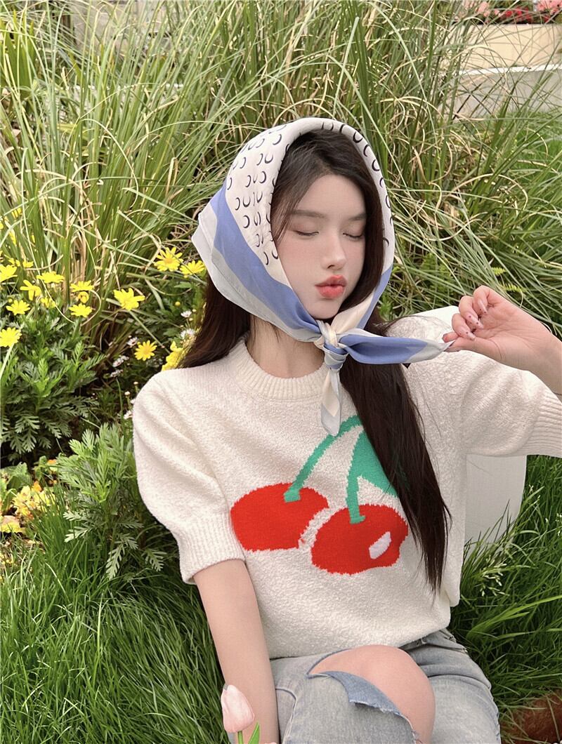 ジャカードショートTシャツ サマースタイルスリム薄手ニットトップス 夏物 10/5 秋冬 オータム ウインター ナチュラル mi4674484833169