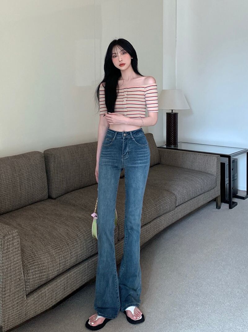 スタンダードジーンズ スリムオータムハイウェストウェストパンツ レトロ ストリート 秋物 10/5 秋冬 オータム ウインター ナチュラル mi4694838777234