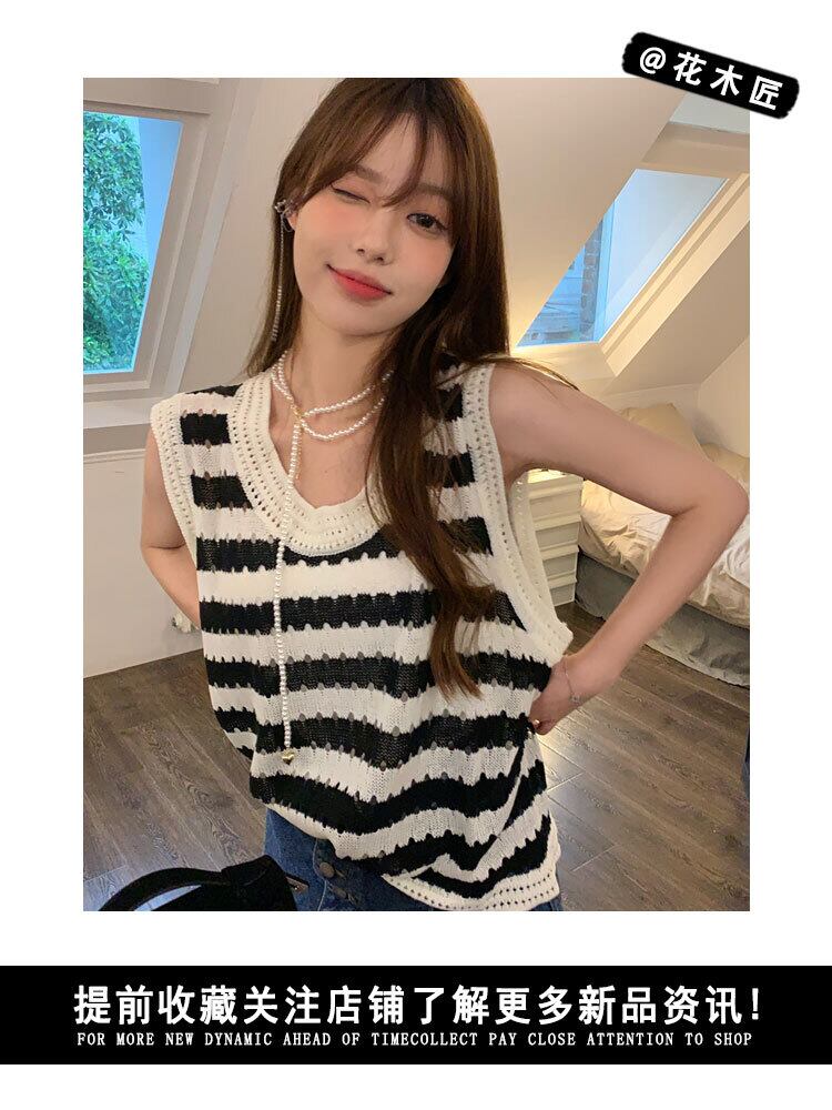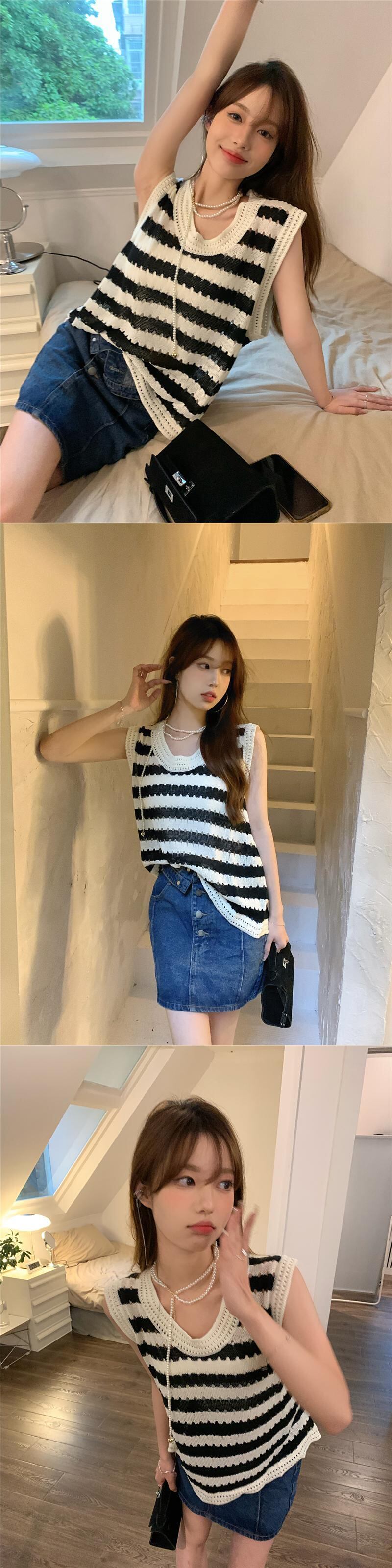ストライプニットサマールーズ薄手ノースリーブトップス 夏物 10/5 秋冬 オータム ウインター ナチュラル mi4635721801071