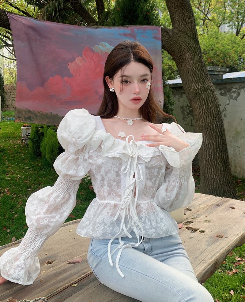 シフォンシャツ オータムレースカラースリーブウェストトップス 秋物 スクウェア 10/5 秋冬 オータム ウインター ナチュラル mi466120345759