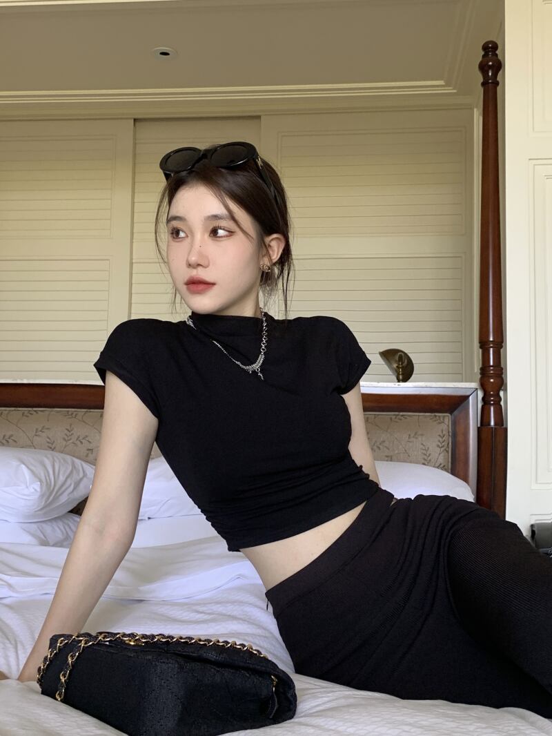 ブラックTシャツ サマースリムカラートップス 夏物 10/5 秋冬 オータム ウインター ナチュラル mi4670000179940
