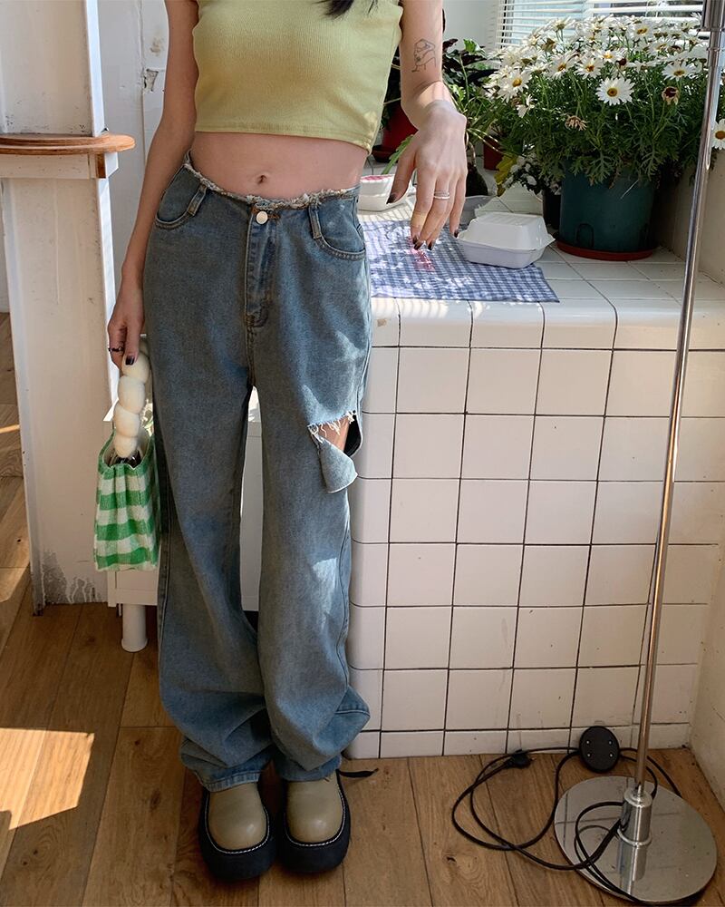 ハイウェストジーンズ オータムルーズ薄手パンツ 秋物 10/5 秋冬 オータム ウインター ナチュラル mi4649455390832