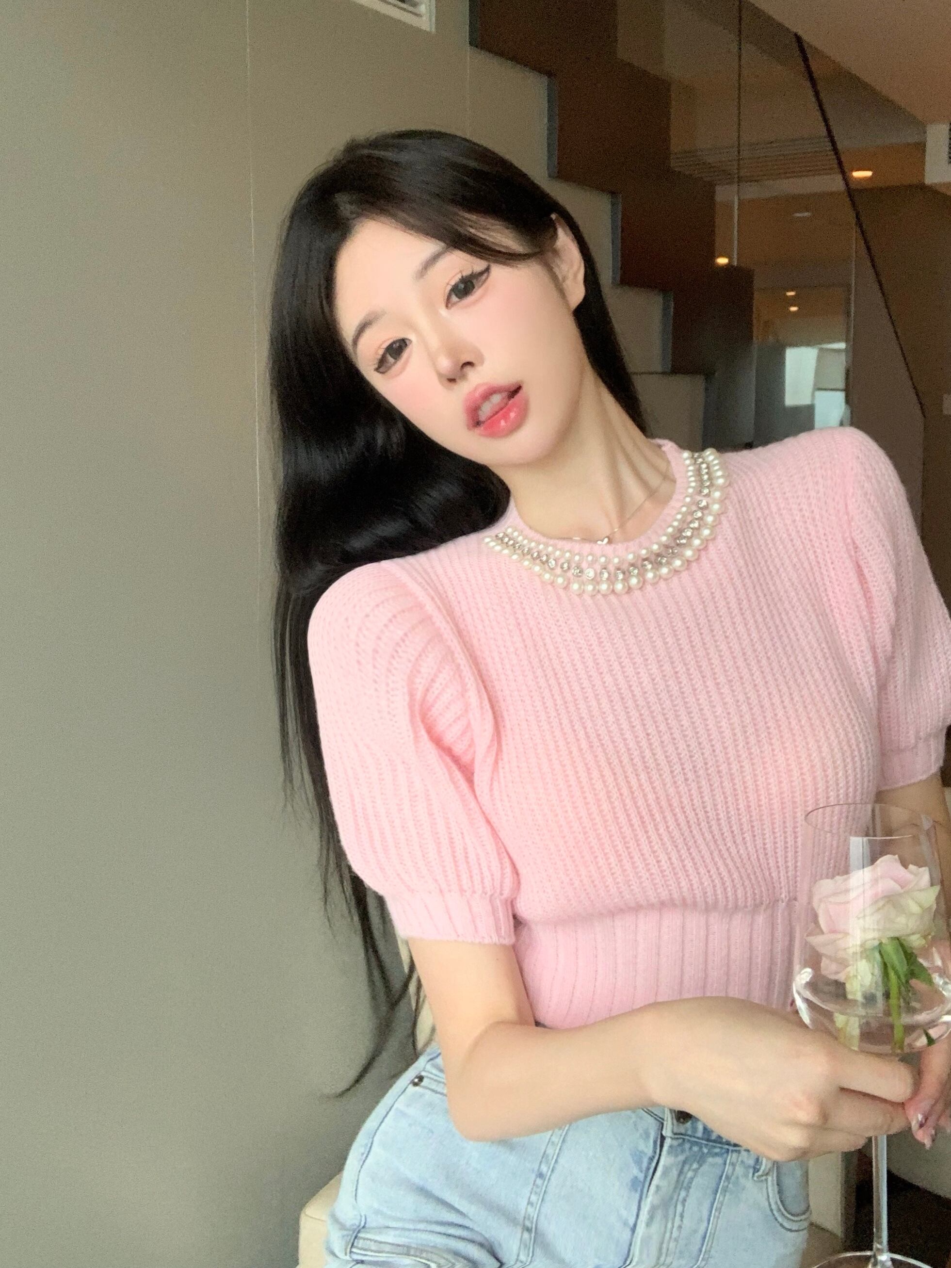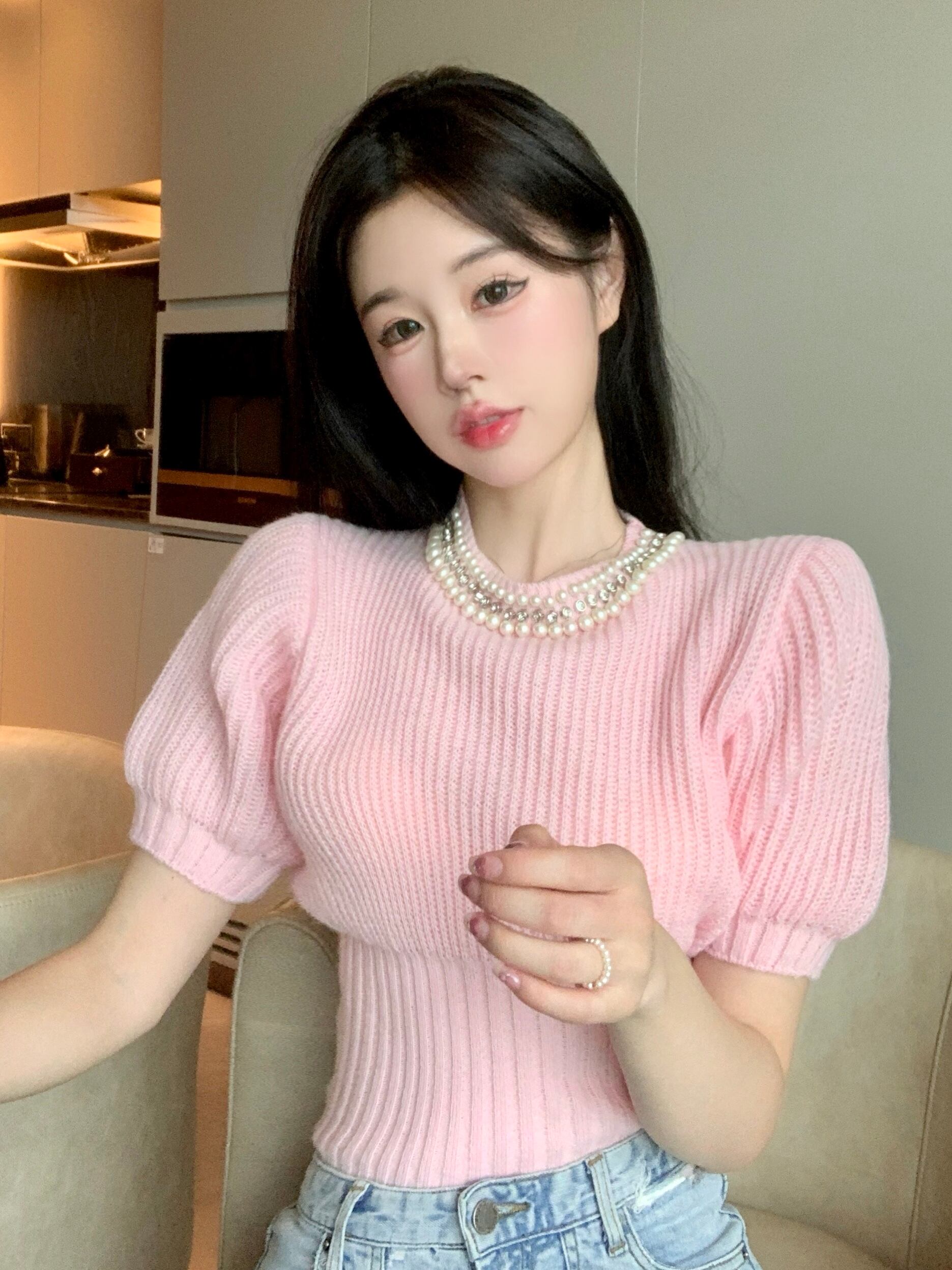 ショートセーター オータムウェスト薄手トップス ピンク 大人ガーリー スウィート キュート カジュアル 秋物 10/5 秋冬 オータム ウインター ナチュラル mi467321150570