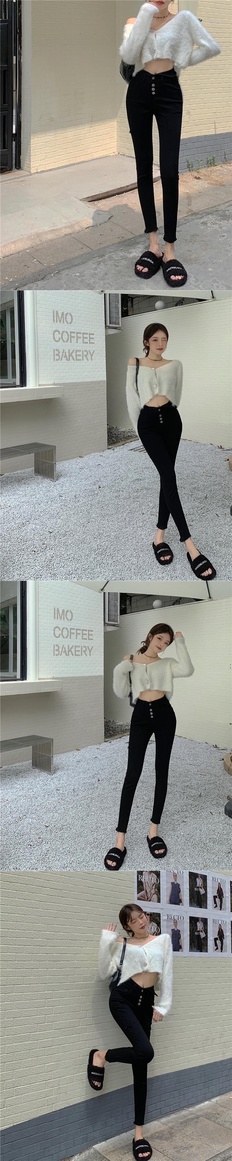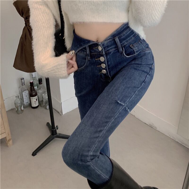 ボタンハイウェストウェストジーンズ オータムスリムパンツ 秋物 10/5 秋冬 オータム ウインター ナチュラル mi4664935198095
