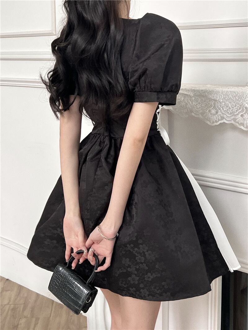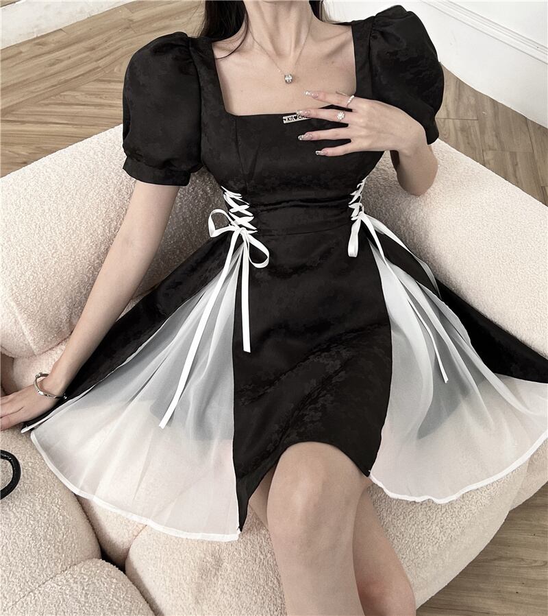 カラーバンドドレス サマースタンダードウェストスカート レトロ 夏物 スクウェア 10/5 秋冬 オータム ウインター ナチュラル mi4678641465323