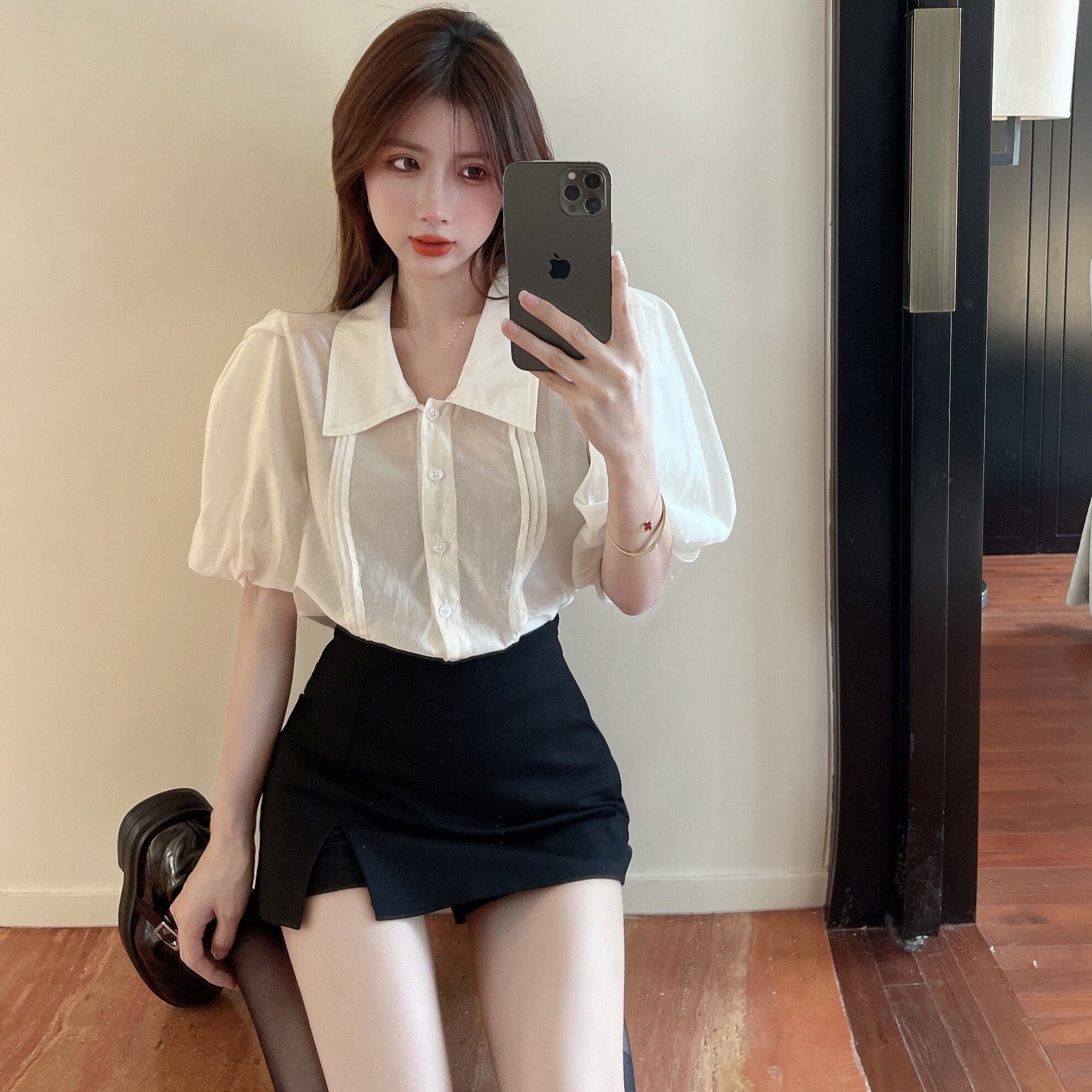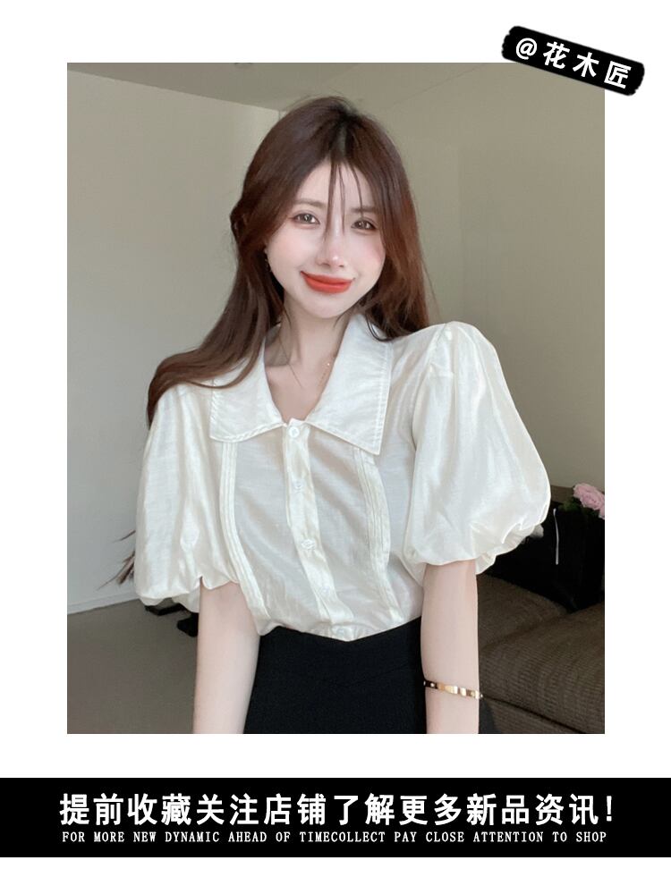 スタンダードカラーシャツ サマースリーブトップス レトロ 大人ガーリー スウィート キュート カジュアル 夏物 10/5 秋冬 オータム ウインター ナチュラル mi4628197401826