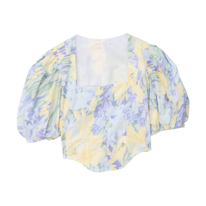 スリーブフローラルシャツ サマーカラーショートトップス 大人ガーリー スウィート キュート カジュアル 夏物 花柄 スクウェア 10/5 秋冬 オータム ウインター ナチュラル mi4660881519464