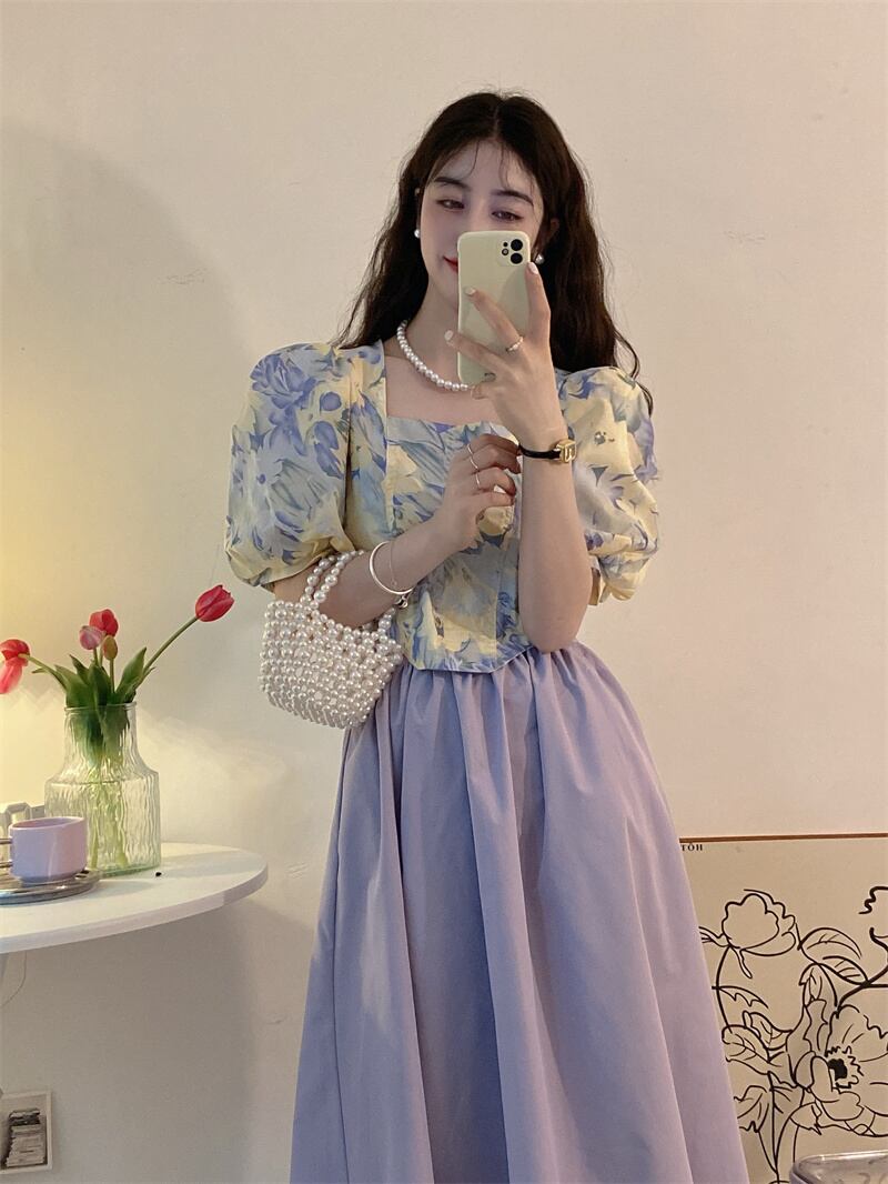 色:ワンピース半袖トップ,パープルスカートワンピース