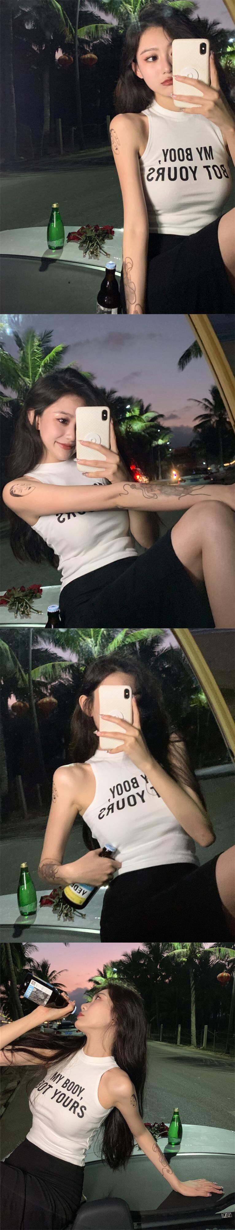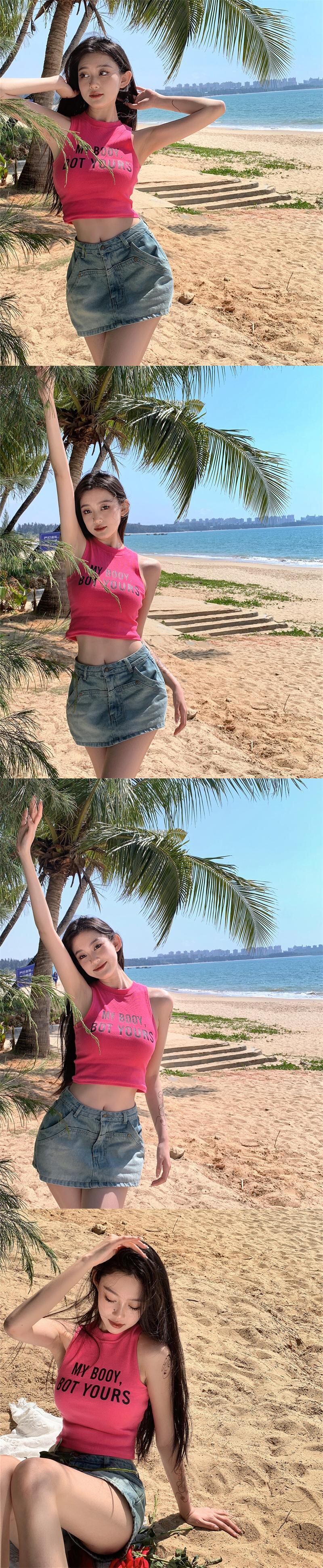 プリント柄ノースリーブサマースリムフィットショートトップス 夏物 10/5 秋冬 オータム ウインター ナチュラル mi4612843551445