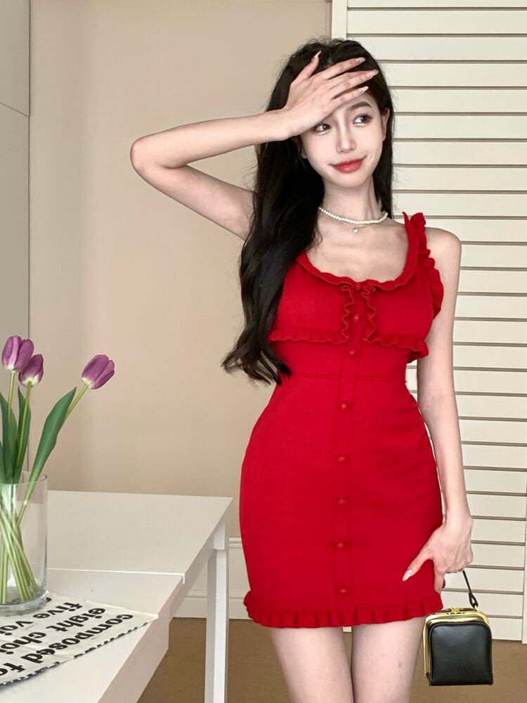 レッドニットドレス サマーウェストスカート 夏物 10/5 秋冬 オータム ウインター ナチュラル mi4627734388370