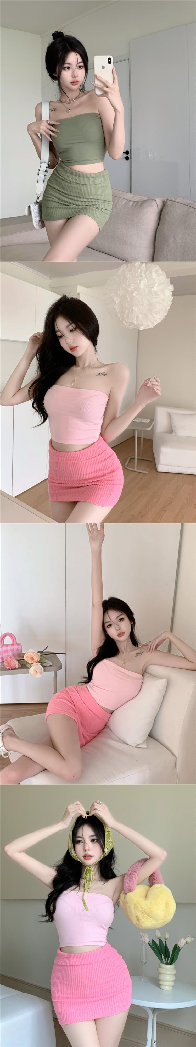 色:アーミーグリーンのチューブトップ,アーミーグリーンのスカート,シングルピンクのチューブトップ,ピンクショートスカートワンピース