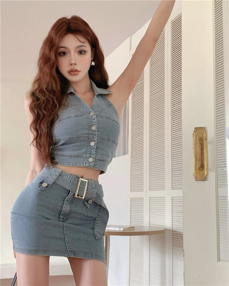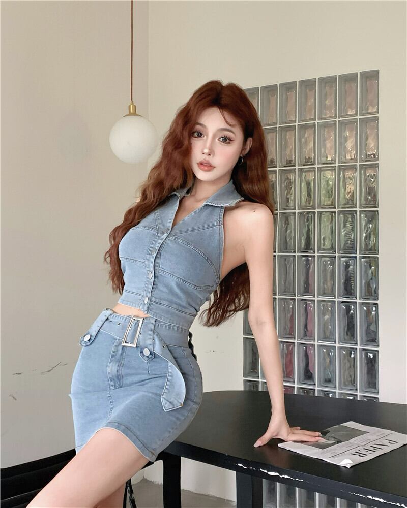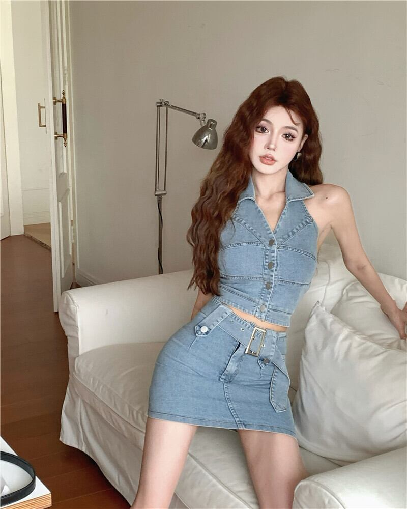 色:デニムベストワンピース,デニムスカートシングル
