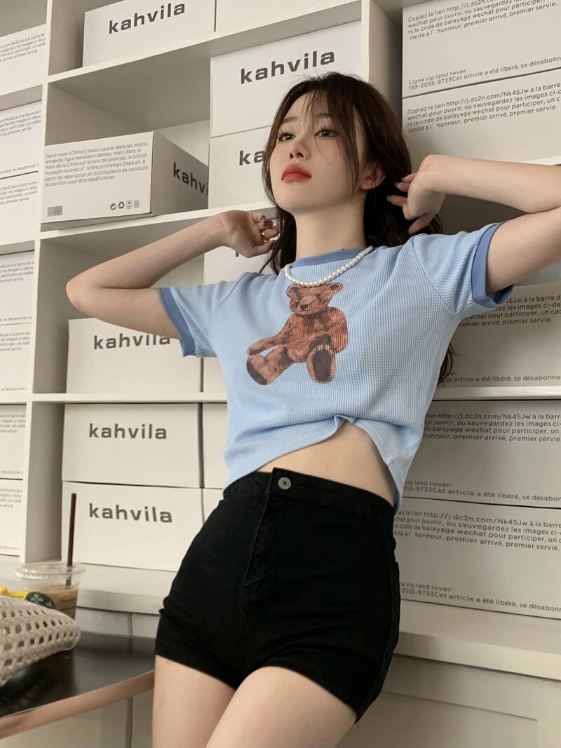 プリント柄ショートTシャツ サマースタイルスリムフィットトップス 大人ガーリー スウィート キュート カジュアル 夏物 10/5 秋冬 オータム ウインター ナチュラル mi4638223647283