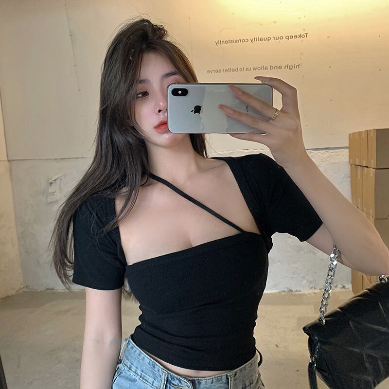 カラーホワイトショートTシャツ サマースリムフィット薄手トップス 夏物 スクウェア 10/5 秋冬 オータム ウインター ナチュラル mi4692582822591