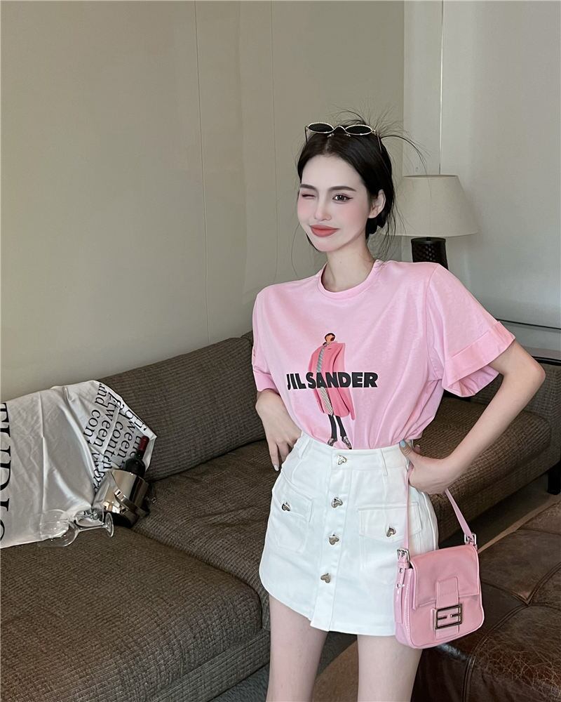 色:黒のTシャツシングルピース,ピンクのTシャツワンピース,ローズレッドスカート,白いスカートのワンピース