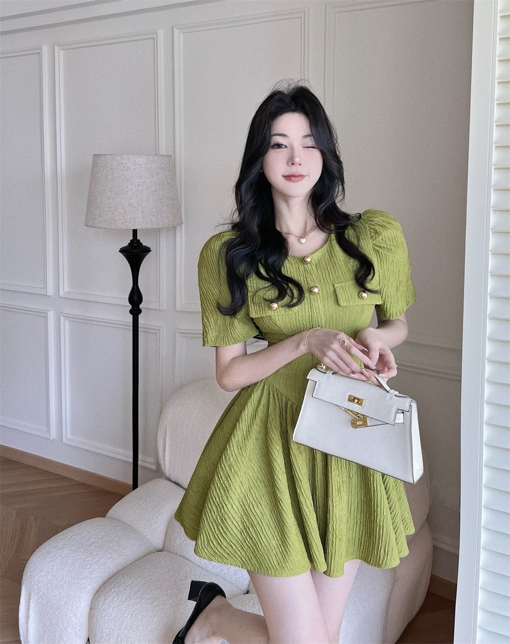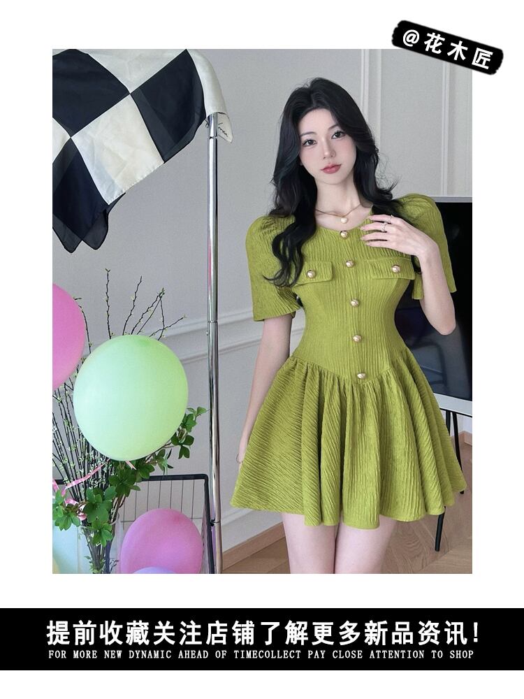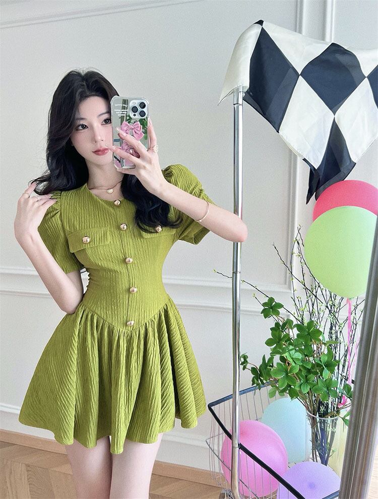 グリーンドレス サマースタイルボタンウェスト薄手Aラインスカート 夏物 10/5 秋冬 オータム ウインター ナチュラル mi4658034165935