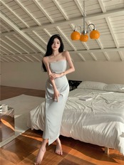 サテンドレス サマースリムウェストスリットスカート 夏物 10/5 秋冬 オータム ウインター ナチュラル mi463993183103
