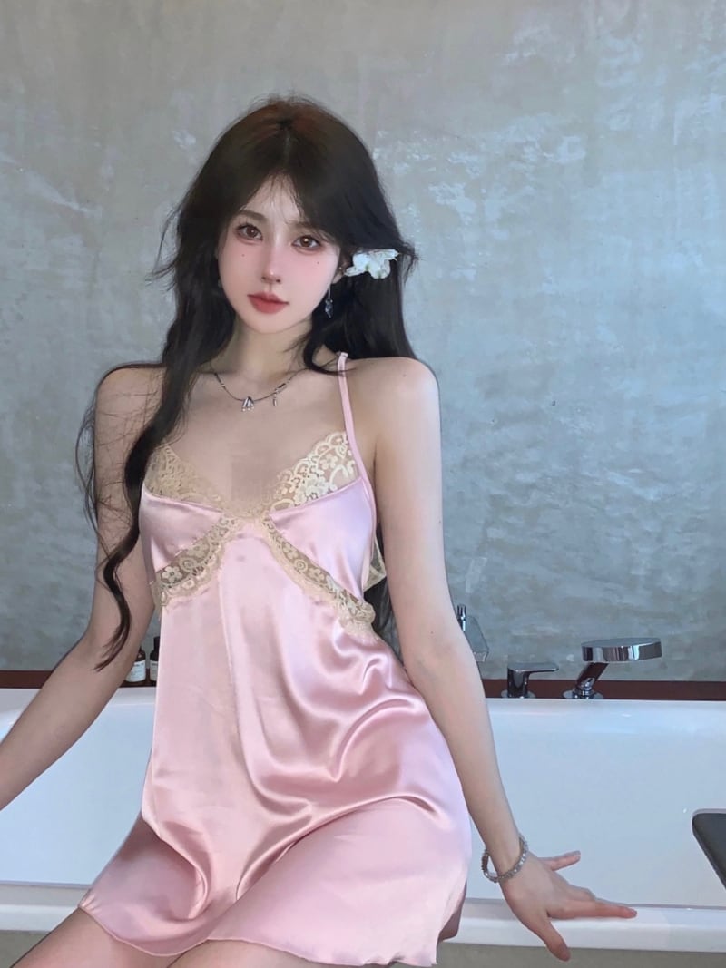 レースドレス サマーストラップレスバックレスウェスト ピンク 夏物 ステッチ 10/5 秋冬 オータム ウインター ナチュラル mi4694195502845