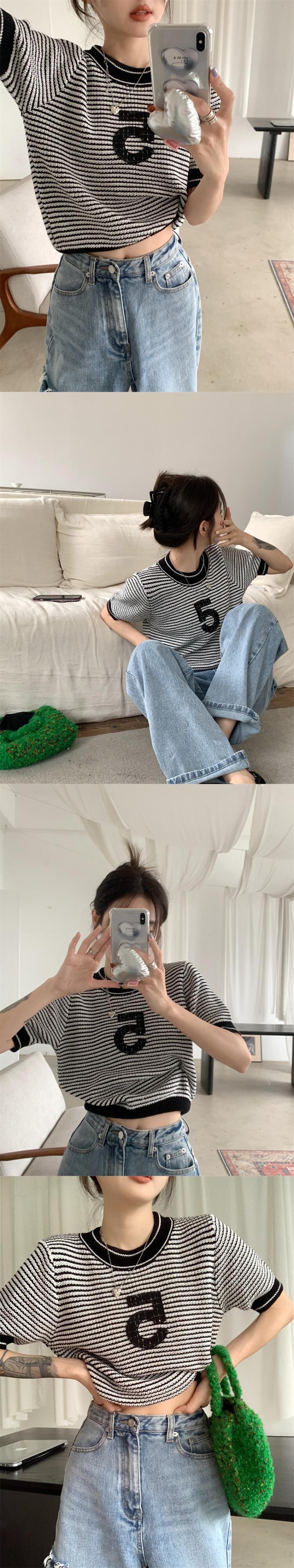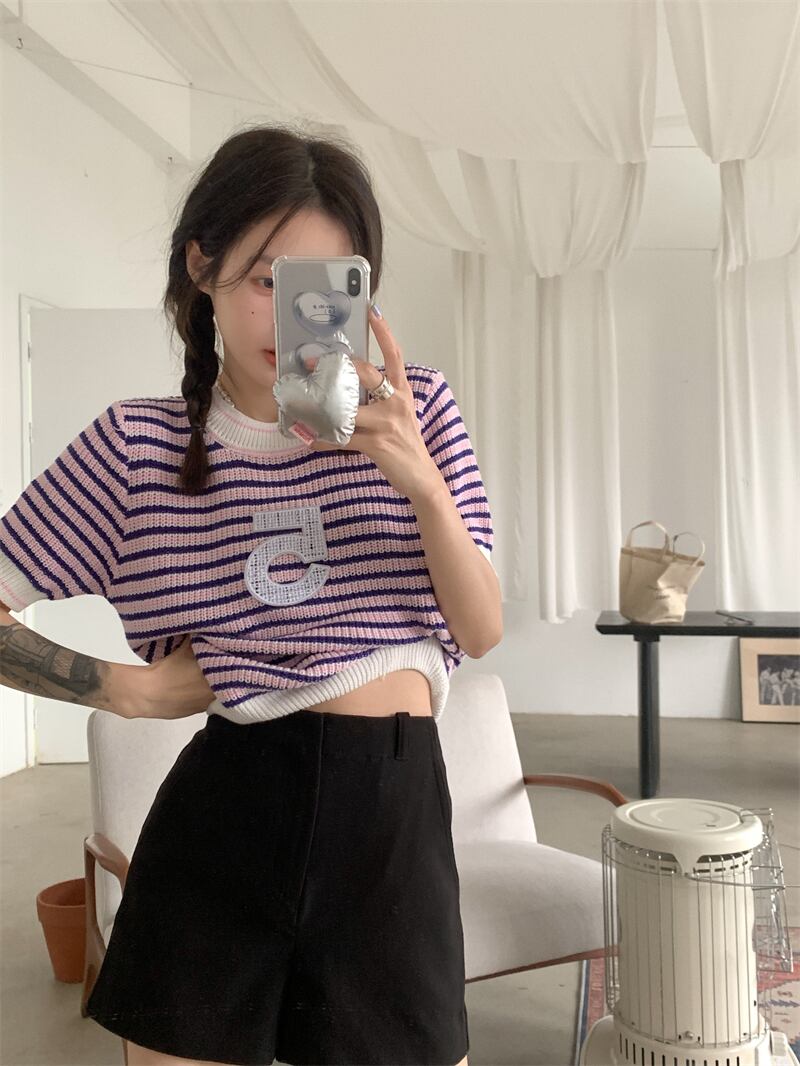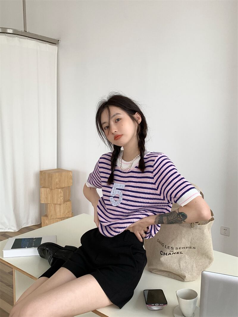 ストライプTシャツ サマーニットトップス 夏物 10/5 秋冬 オータム ウインター ナチュラル mi4635818322505