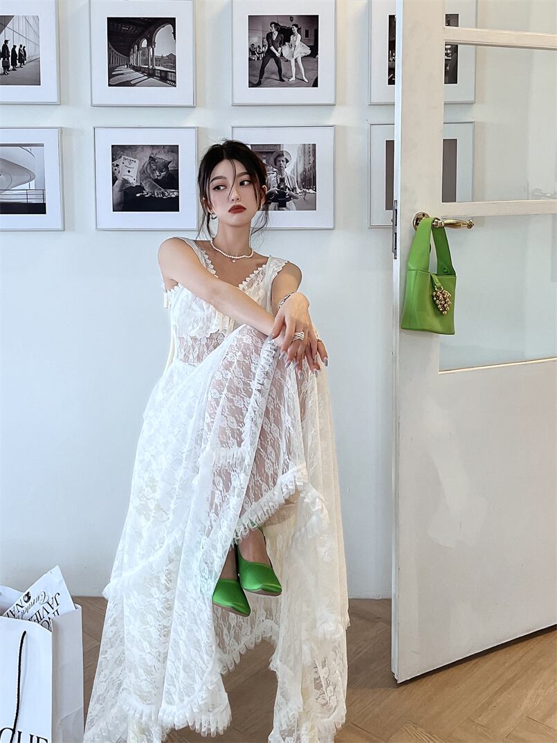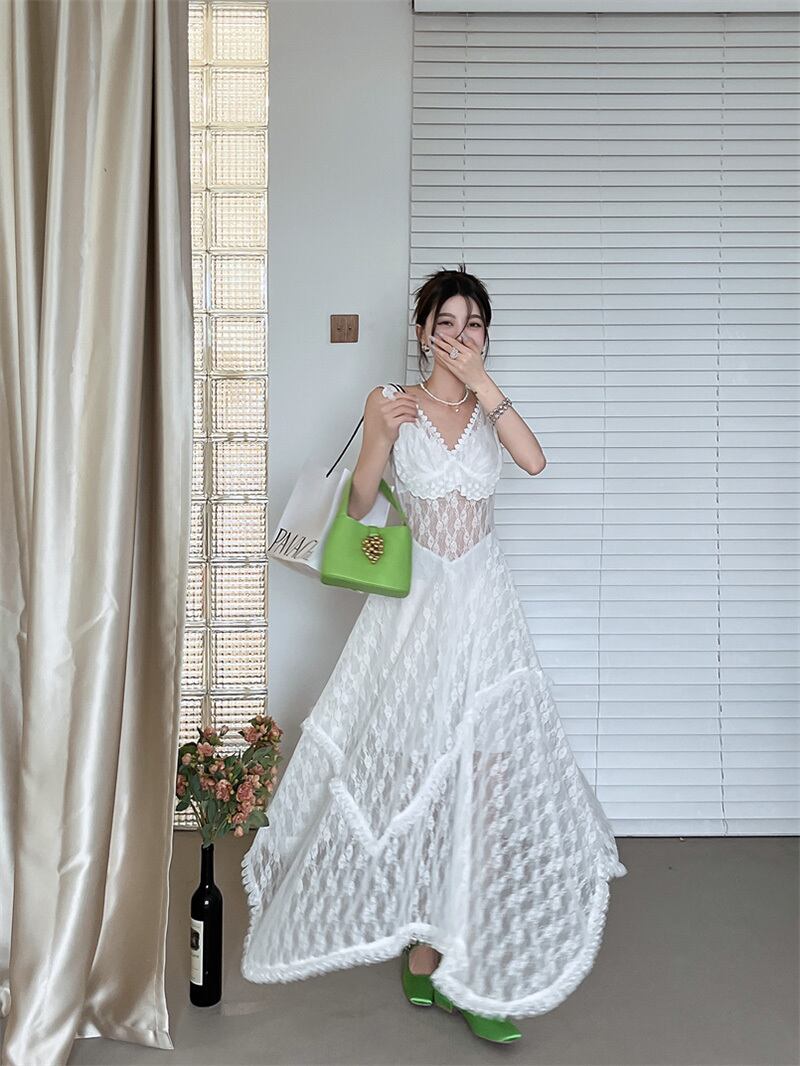 ホワイトレースドレス サマーウェストAライン 夏物 10/5 秋冬 オータム ウインター ナチュラル mi4623883175110