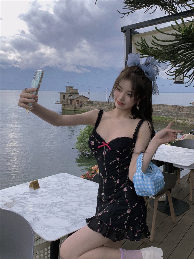 刺繍レースドレス サマーVネックウェストAラインスカート 夏物 10/5 秋冬 オータム ウインター ナチュラル mi4614290265886