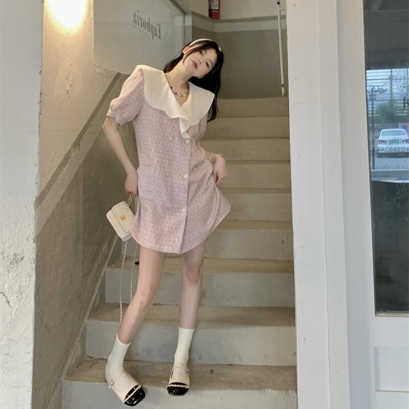 カラードレス サマーダブルブレストルーズAラインスカート ピンク 夏物 10/5 秋冬 オータム ウインター ナチュラル mi4678919045106