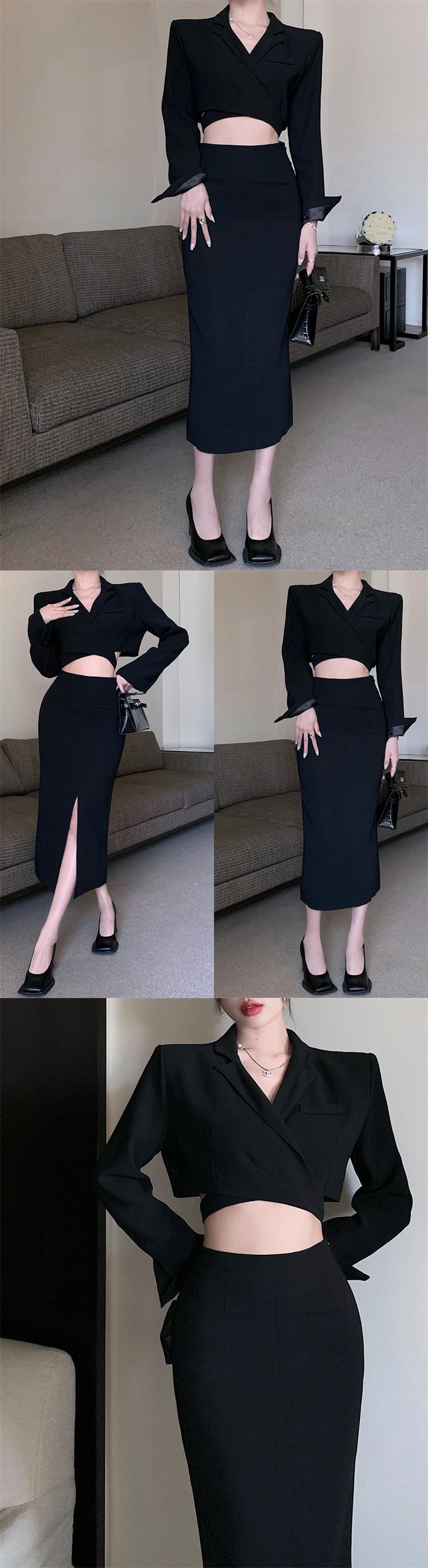 色:黒いスーツのワンピース,黒のハーフスカートワンピース