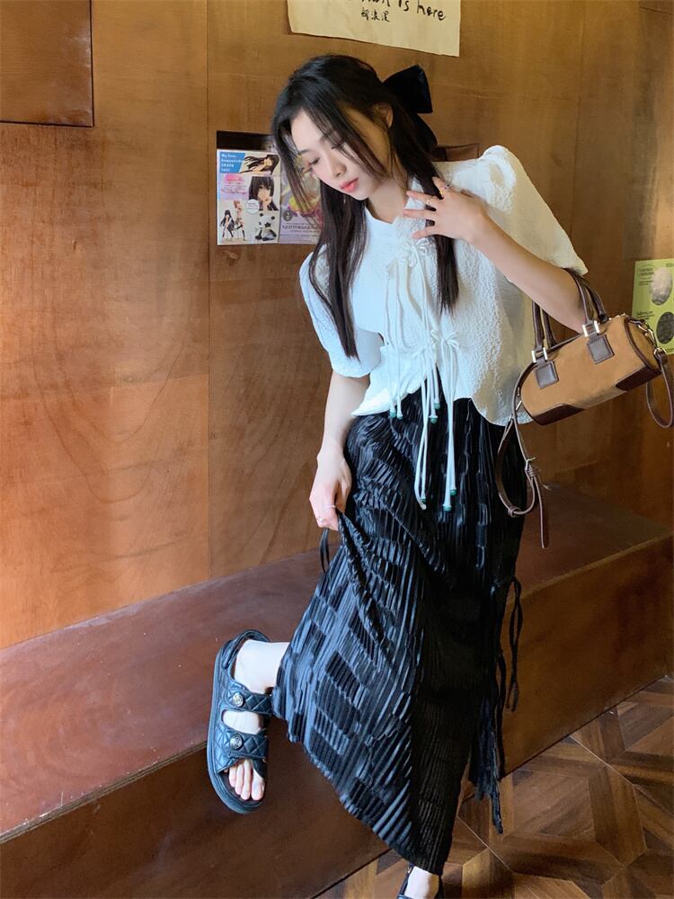 色:ホワイトトップシングルピース,ブラックトップシングルピース,ブラックプリーツスカート,グリーンプリーツスカート
