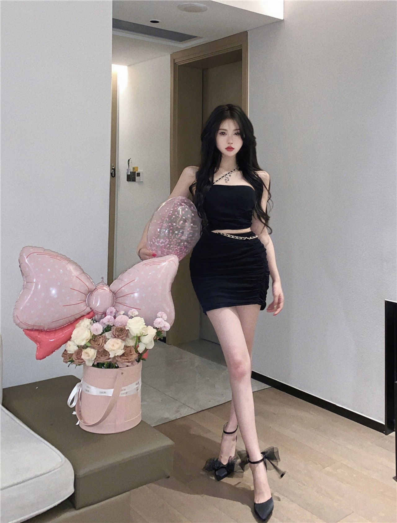 ブラックチェーン ホルタードレス サマーウェストスリムスカート 夏物 10/5 秋冬 オータム ウインター ナチュラル mi4642173020832