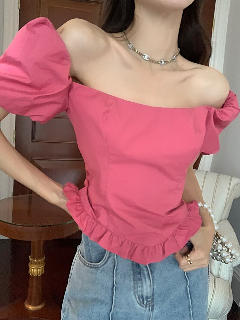 カラースリーブシャツ サマーサイドウェスト 大人ガーリー スウィート キュート カジュアル 夏物 スクウェア 10/5 秋冬 オータム ウインター ナチュラル mi4665101403340