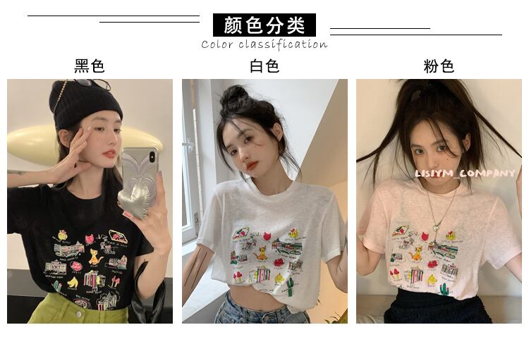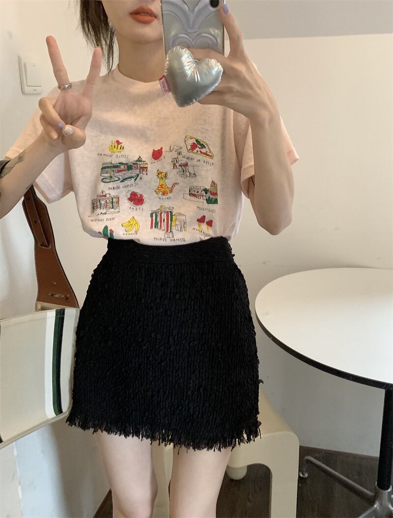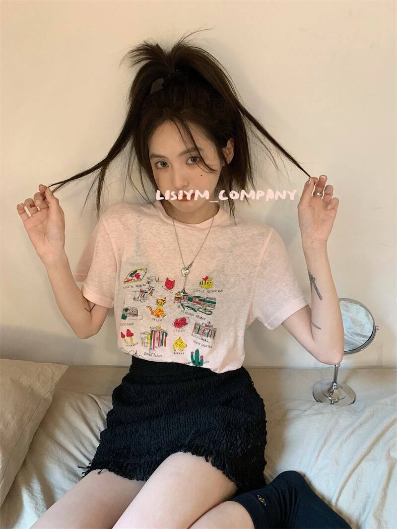プリント柄Tシャツ サマースリムトップス 夏物 10/5 秋冬 オータム ウインター ナチュラル mi4695416109189