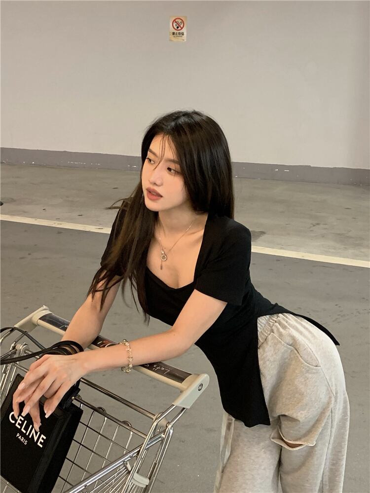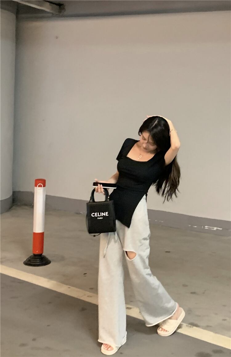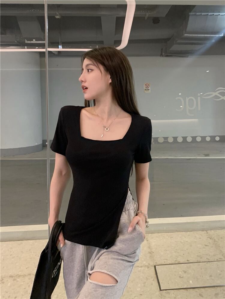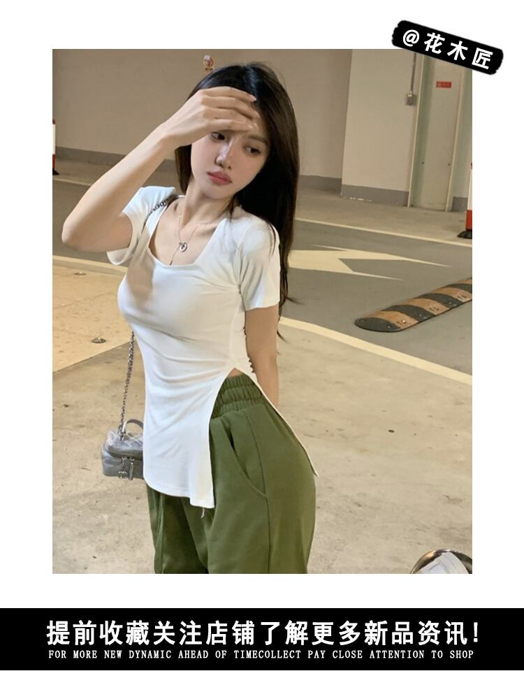 スリットホワイトTシャツ サマースタイルスリムトップス 夏物 ピュア スクウェア 10/5 秋冬 オータム ウインター ナチュラル mi4652809135723