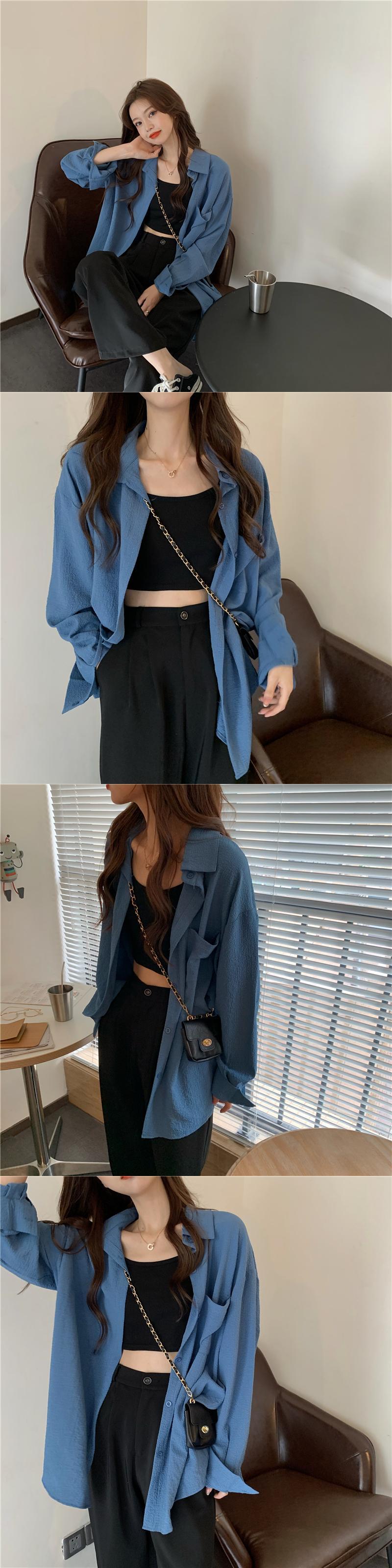 スタンダードブルーシャツ オータムルーズトップス ロング レトロ 秋物 10/5 秋冬 オータム ウインター ナチュラル mi4658669215045