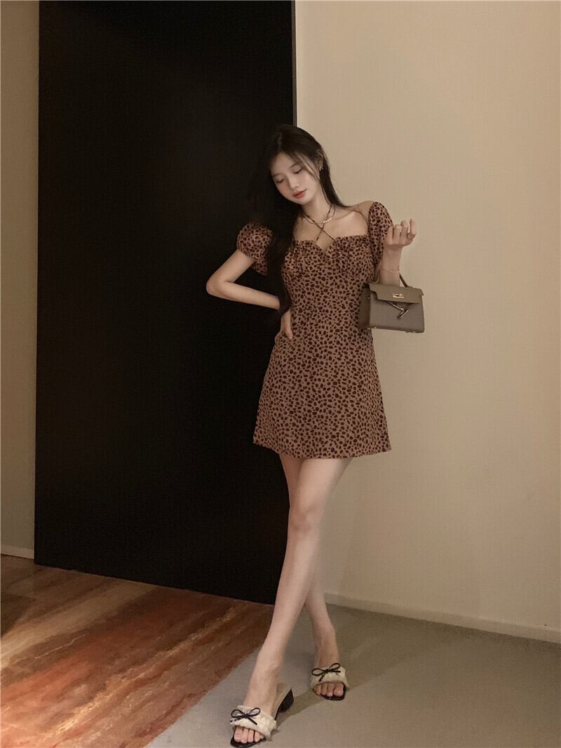 レオパードプリント柄ホルタードレス サマーウェスト薄手Aラインスカート 夏物 10/5 秋冬 オータム ウインター ナチュラル mi4616979840166