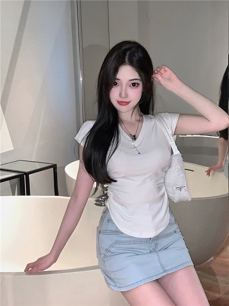 スタイルホワイトTシャツ サマープリーツスリムフィットトップス 夏物 10/5 秋冬 オータム ウインター ナチュラル mi4622535838