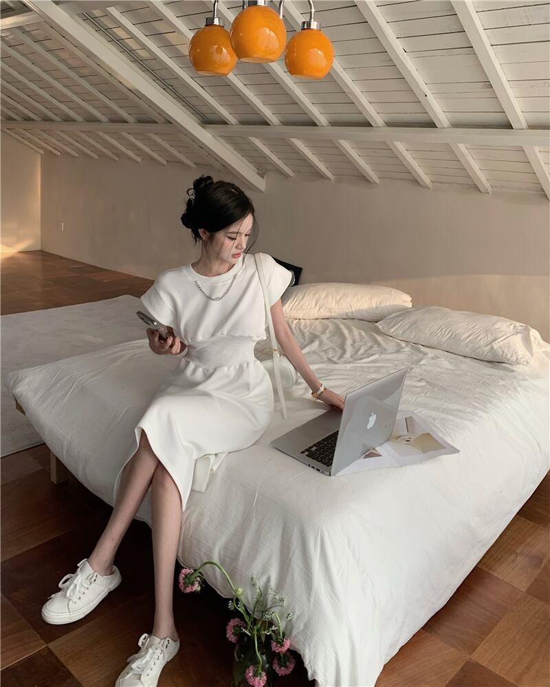 ホワイトドレス サマーウェストスリットAラインスカート 夏物 10/5 秋冬 オータム ウインター ナチュラル mi4643352378998