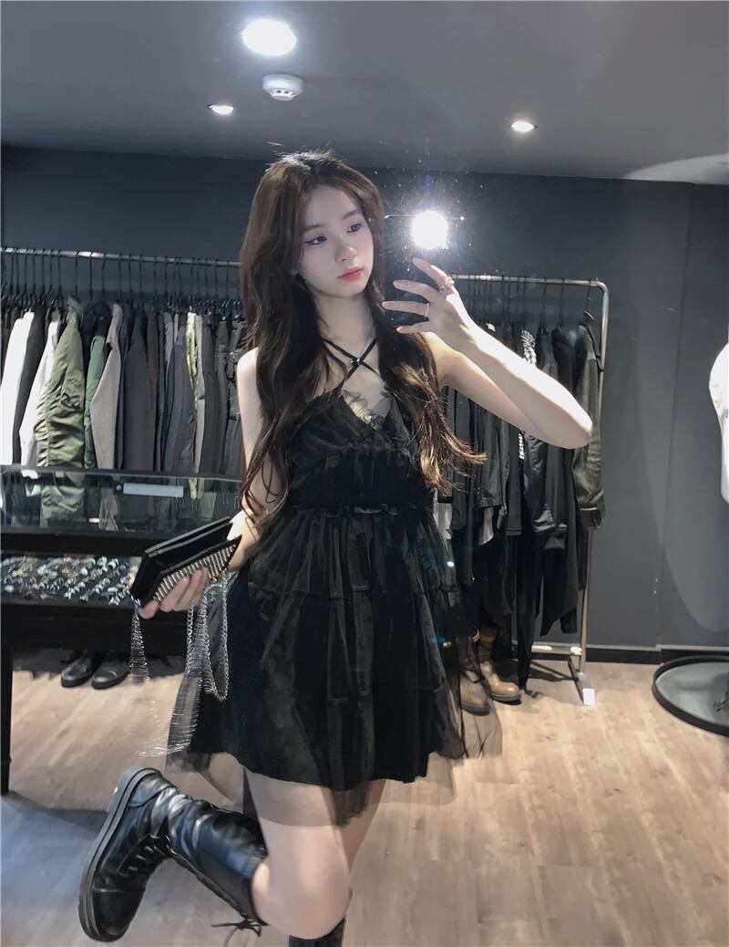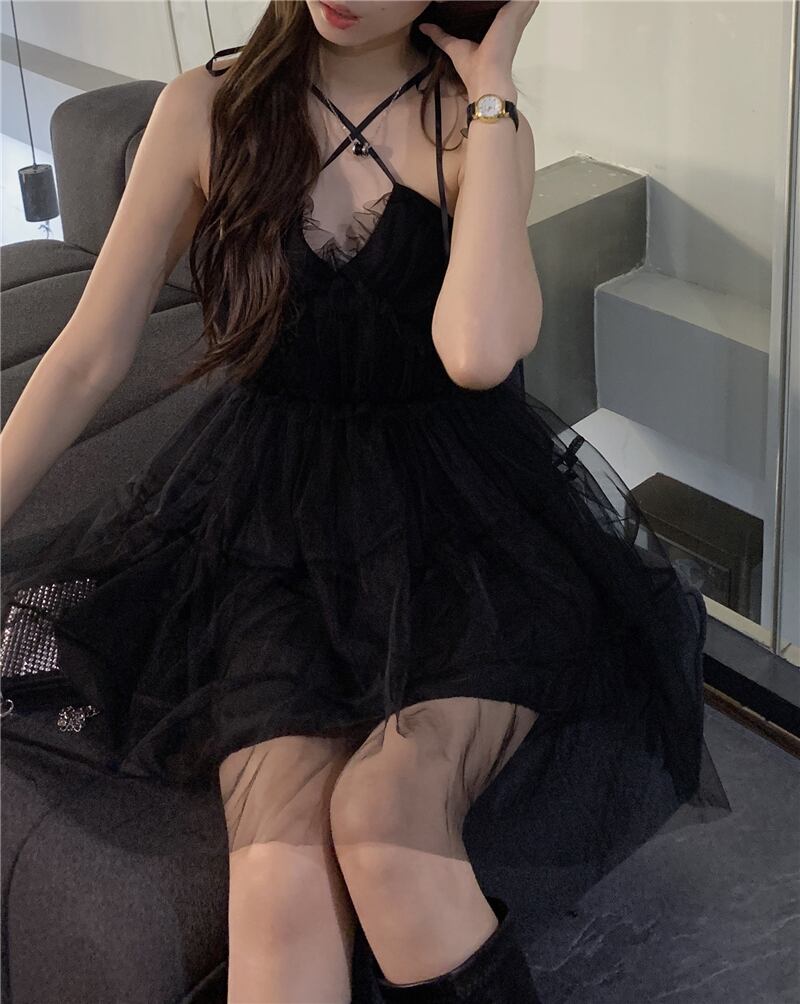 ブラックドレス サマーメッシュスカート ウェスト薄手Aライン 大人ガーリー スウィート キュート カジュアル 夏物 パニエ ペチコート 10/5 秋冬 オータム ウインター ナチュラル mi4635940721141