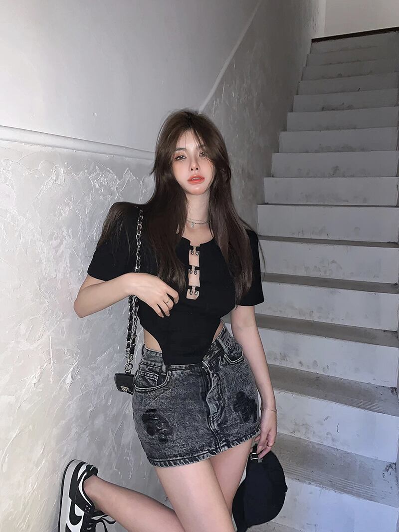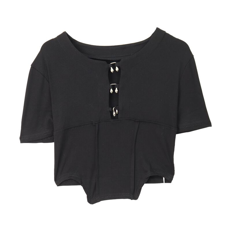 ブラックショートTシャツ サマースリムフィット薄手トップス 夏物 10/5 秋冬 オータム ウインター ナチュラル mi4637173707738