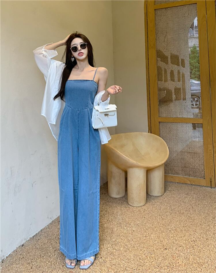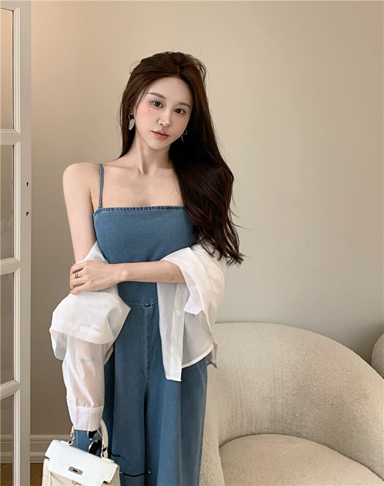 色:白日焼け防止シャツ,ライトブルーデニムジャンプスーツ,ダークブルーデニムジャンプスーツ