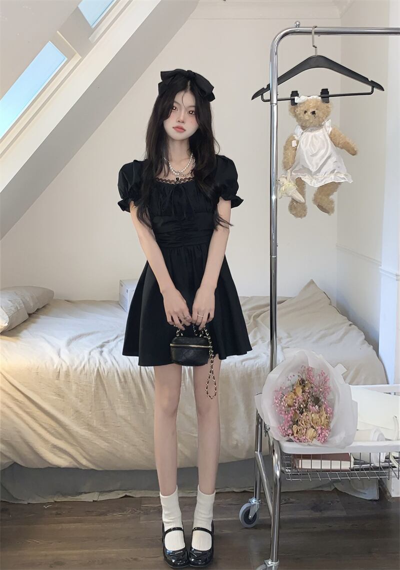 スタイルブラックドレス サマーカラーウェストスリーブAラインスカート 夏物 スクウェア 10/5 秋冬 オータム ウインター ナチュラル mi4619855018345