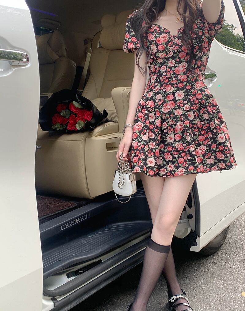 フローラルドレス サマーウェストスリーブAラインスカート 大人ガーリー スウィート キュート カジュアル 夏物 花柄 10/5 秋冬 オータム ウインター ナチュラル mi4694011391242
