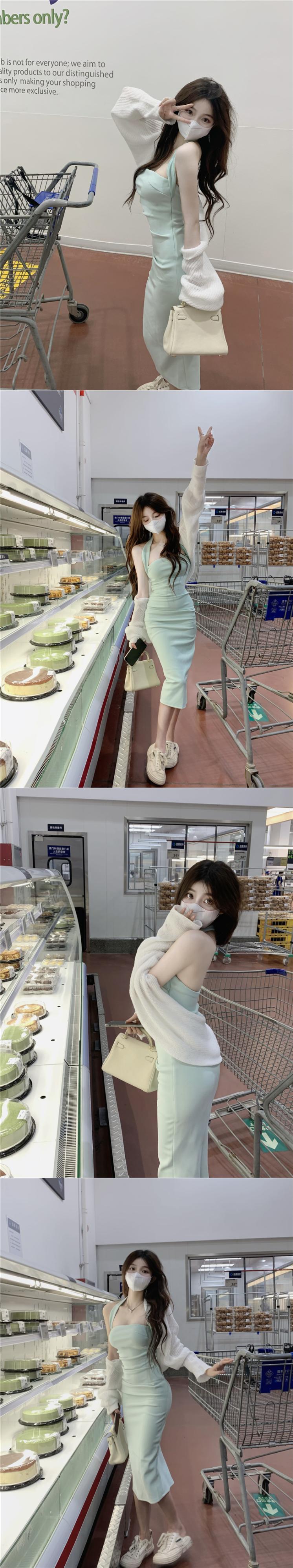 色:ミントグリーンワンピースワンピース,ホワイトカーディガンワンピース