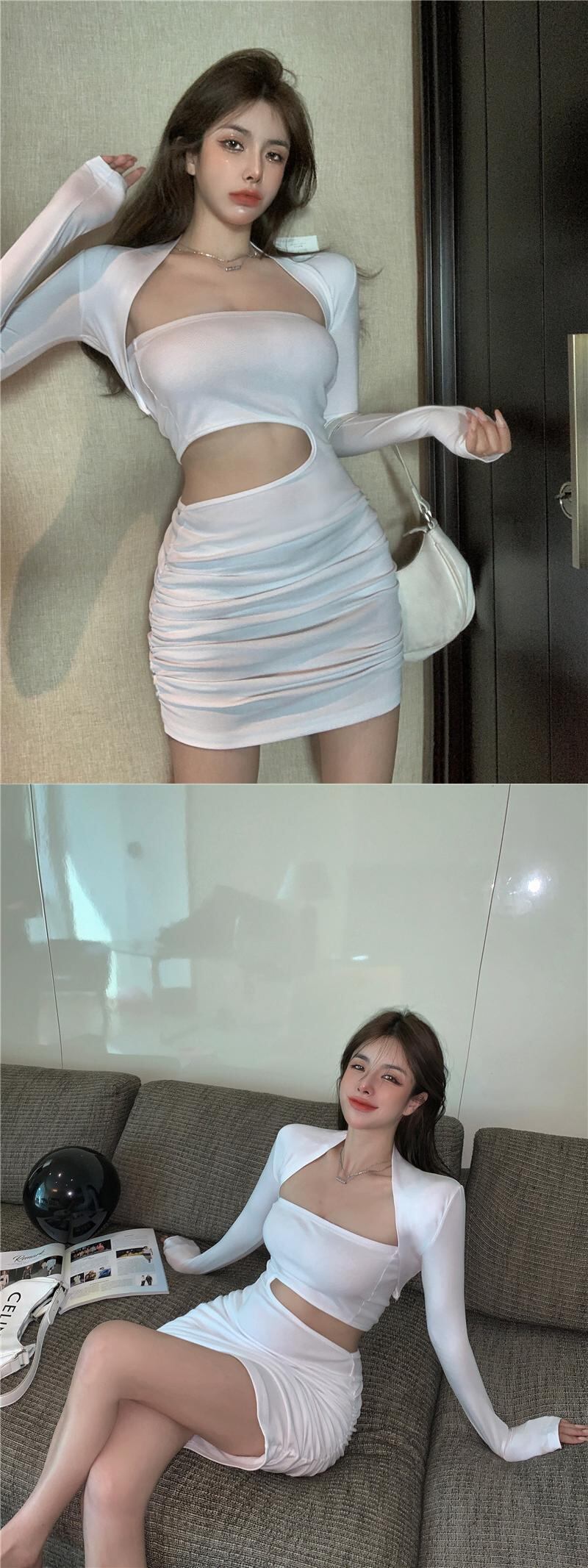 色:ホワイトベストカーディガン,ホワイトラップドレス,グレーのベストカーディガン,グレーのラップドレス