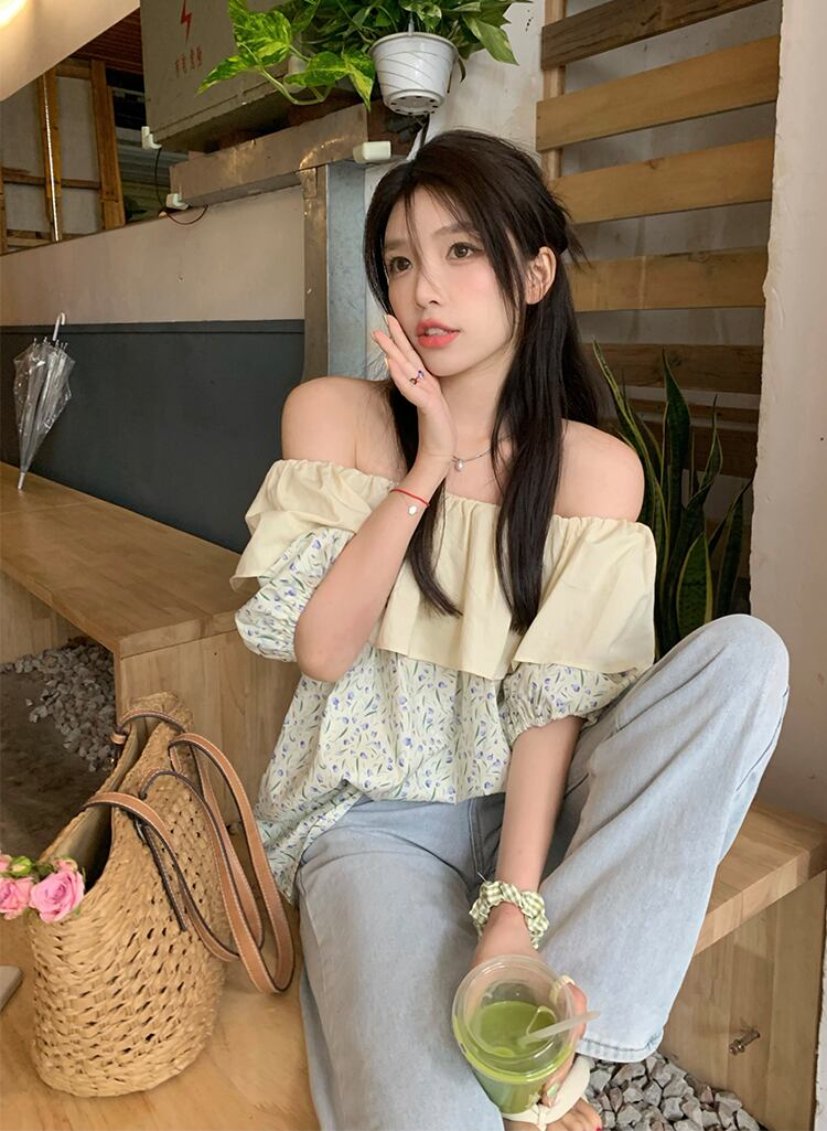 フローラルトップス サマーラッフルルーズシャツ 夏物 花柄 10/5 秋冬 オータム ウインター ナチュラル mi469609376969