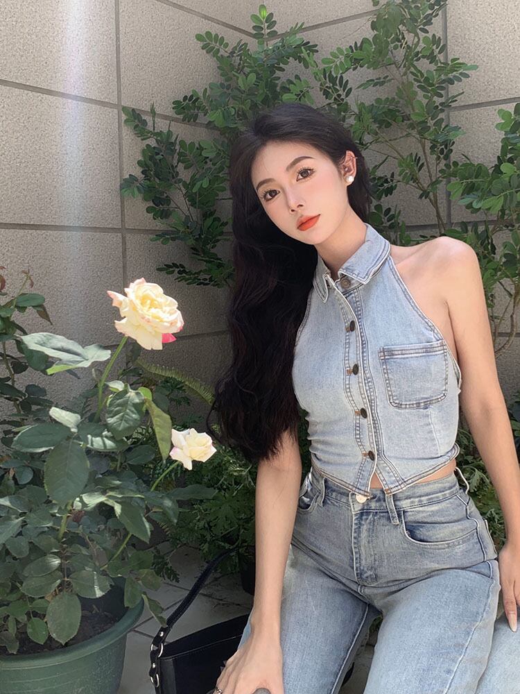 スタンダードカラーホルターレディースサマースリムショートトップス レトロ 夏物 10/5 秋冬 オータム ウインター ナチュラル mi4647862595197