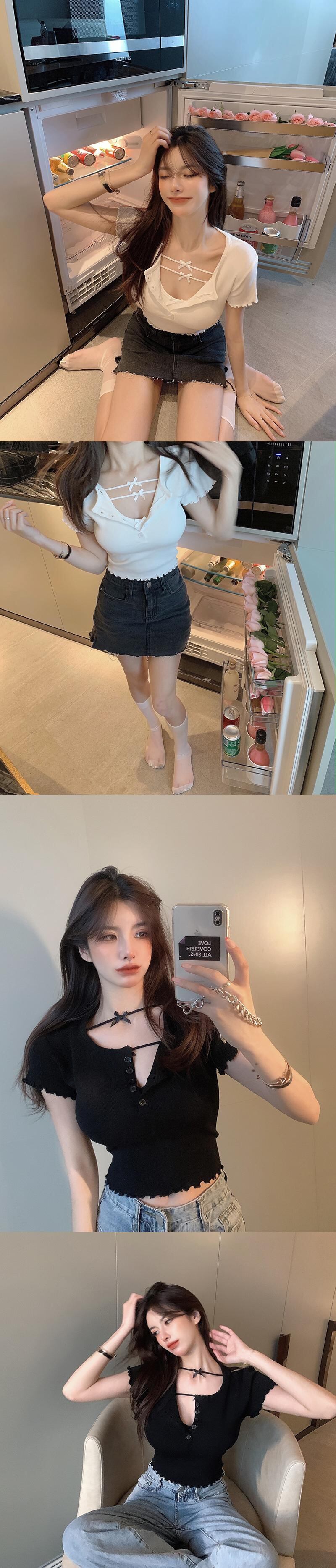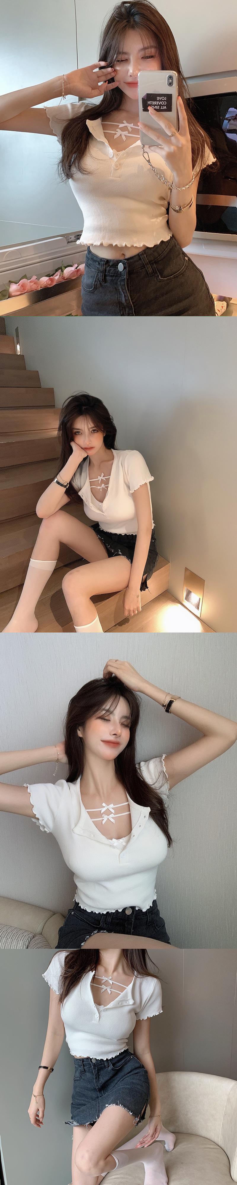 スタイルホワイトニットショートTシャツ サマースリムトップス 夏物 10/5 秋冬 オータム ウインター ナチュラル mi4637007228232