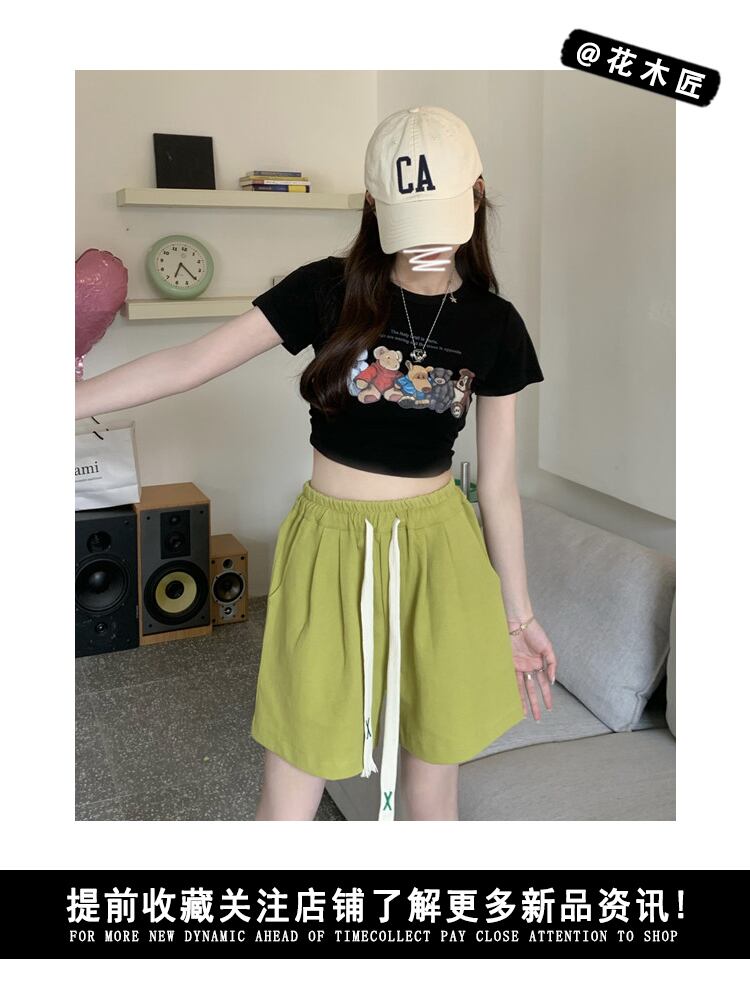 グリーンショーツ サマールーズパンツ スタイルギャザーハイウェストウェストスリムカジュアル 夏物 ブルマー 10/5 秋冬 オータム ウインター ナチュラル mi4644638383179