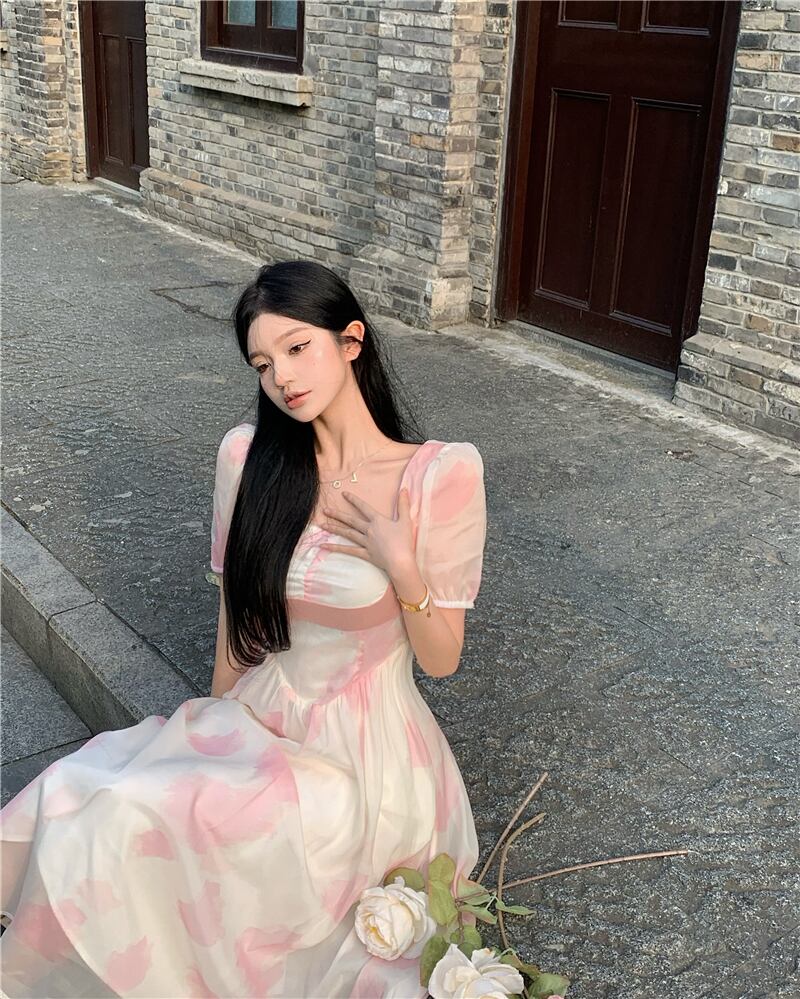 ドレス サマーウェストAラインスカート ピンク 大人ガーリー スウィート キュート カジュアル 夏物 スクウェア 10/5 秋冬 オータム ウインター ナチュラル mi4626114224000