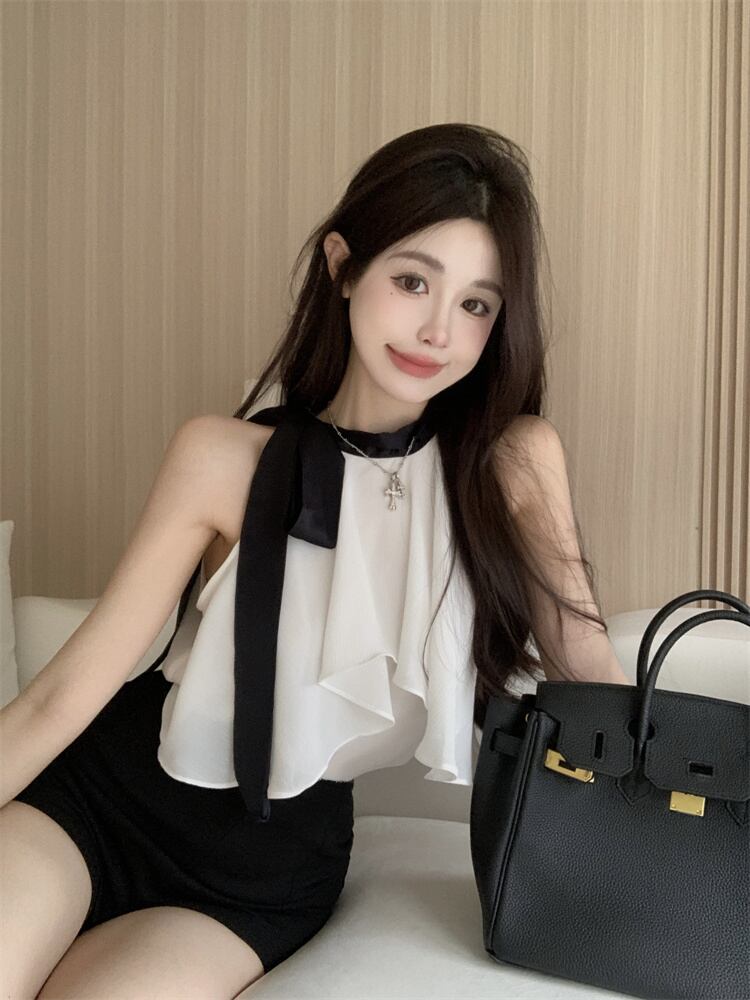 カラーバンドノースリーブシャツ サマー薄手トップス 夏物 10/5 秋冬 オータム ウインター ナチュラル mi4667109874203